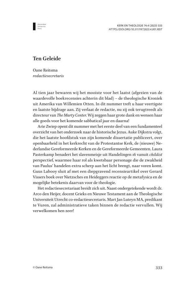 - Source: Kerk en Theologie, Volume 74, Issue 4, Oct 2023, p. 333 - 333