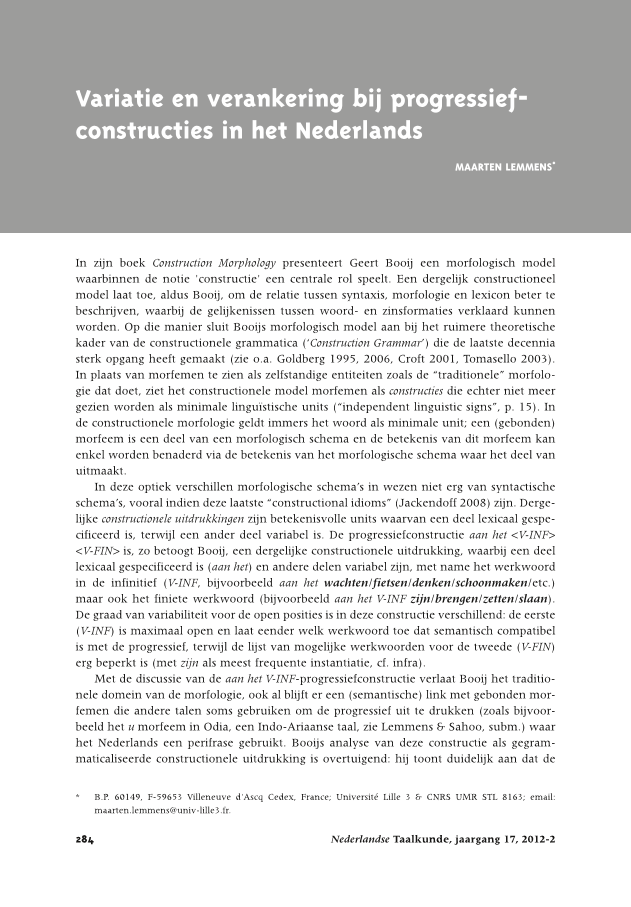 - Source: Nederlandse Taalkunde, Volume 17, Issue 2, Jul 2012, p. 284 - 291