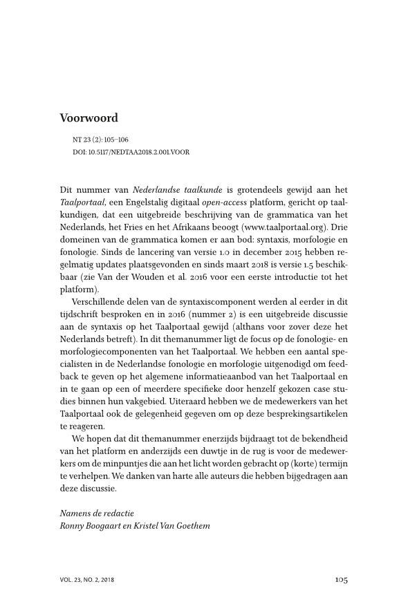 - Source: Nederlandse Taalkunde, Volume 23, Issue 2, Dec 2018, p. 105 - 106