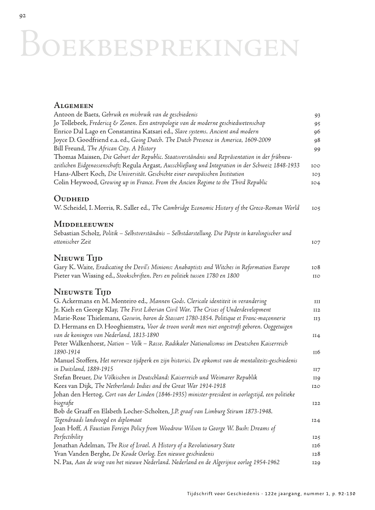 - Source: Tijdschrift voor Geschiedenis, Volume 122, Issue 1, Mar 2009, p. 93 - 94