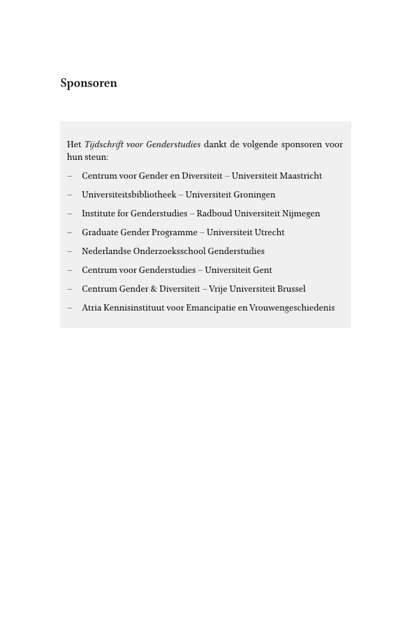 - Source: Tijdschrift voor Genderstudies, Volume 21, Issue 4, Jan 2019, p. 397 - 397