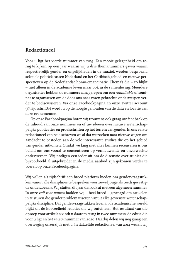 - Source: Tijdschrift voor Genderstudies, Volume 22, Issue 4, Nov 2019, p. 317 - 320